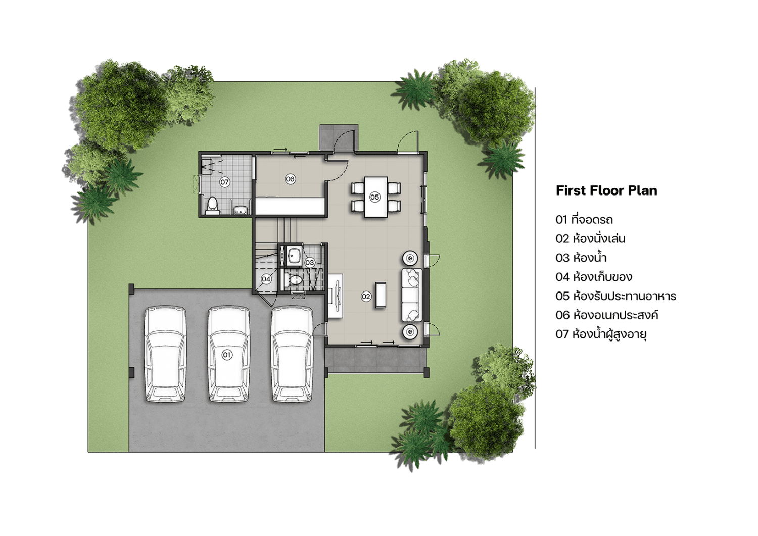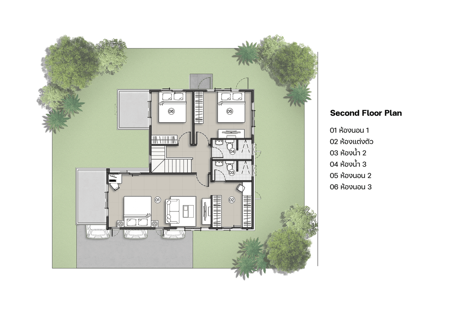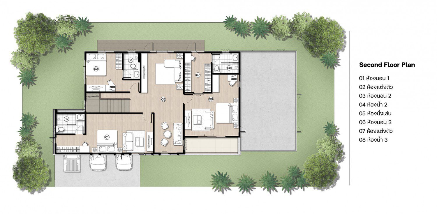 แบบบ้านที่เหมาะสำหรับครอบครัวขนาดใหญ่รองรับได้มากถึง 5 ห้องนอน 6 ห้องน้ำ 3 ที่จอดรถ บนเนื้อที่มากถึง 306 ตรม